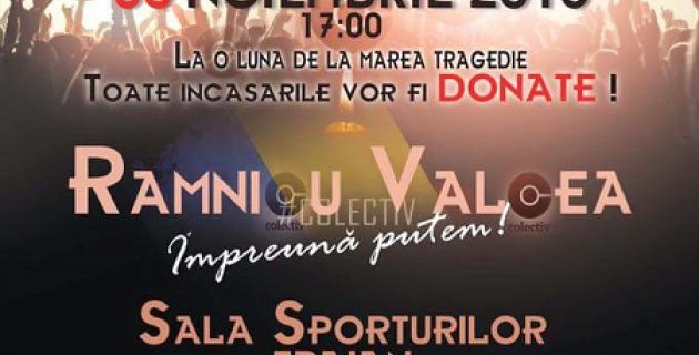 Luni, 30 noiembrie 2015, începând cu ora 17.00, la o lună de la marea tragedie produsă în clubul Colectiv din București, în sala Sporturilor Traian din Râmnicu Vâlcea va fi organizat un concert caritabil.