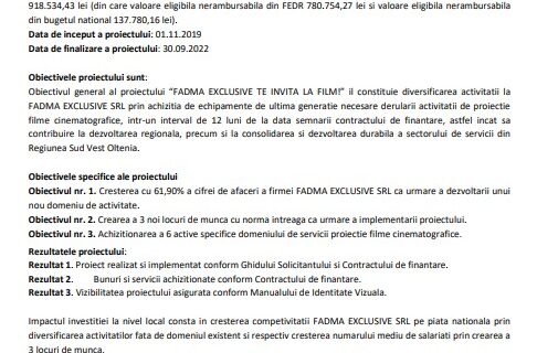 „FADMA EXCLUSIVE TE INVITĂ LA FILM!” FADMA EXCLUSIVE SRL anunță finalizarea activităților proiectului „FADMA EXCLUSIVE TE INVITĂ LA FILM!”